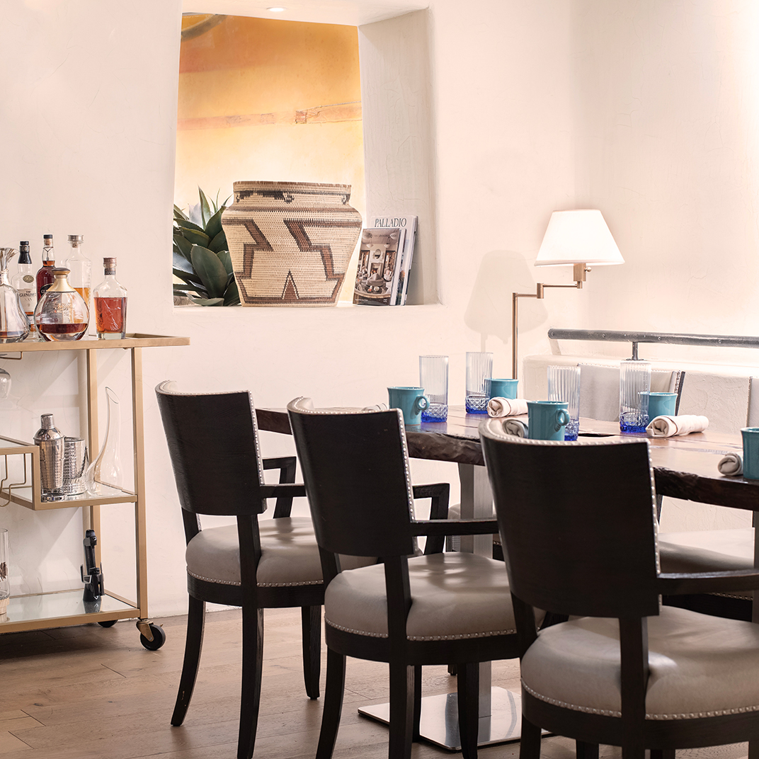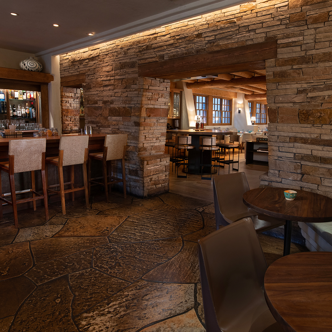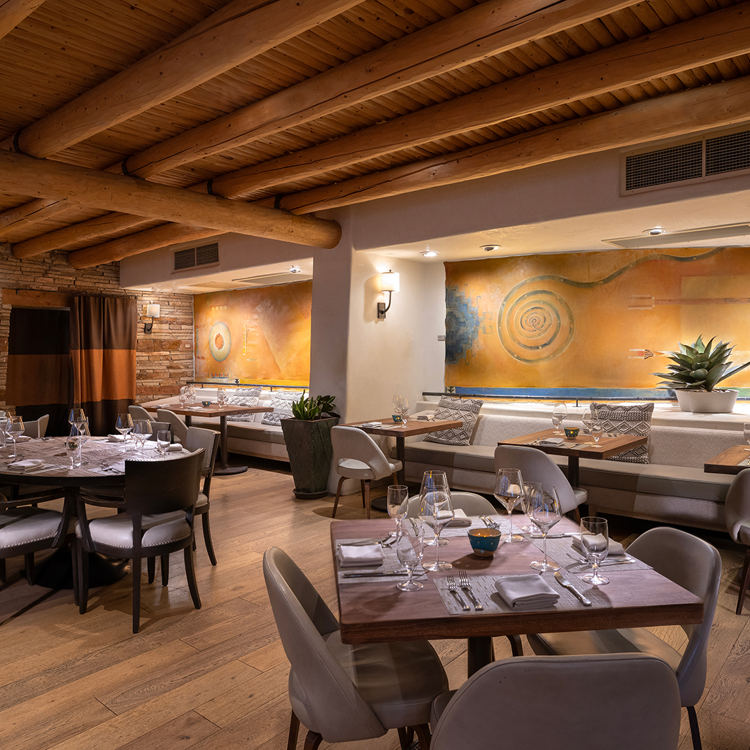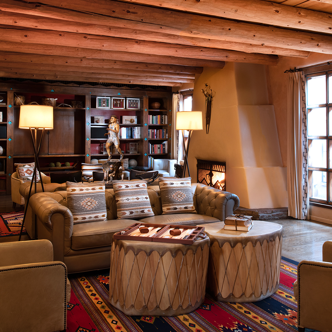 The interiors, though renovated, remain antique in style, and the work of New Mexican and Native American artists and craftspeople features prominently throughout. The rooms and suites are unmistakably Southwestern in their architecture and design, but they’re bright and uncluttered, even contemporary; kiva-style gas fireplaces keep things cozy during the chilly winter months. And no less attention has been paid to the Inn’s public spaces. The lobby and library are welcoming spaces, as are the dining and drinking venues — from the Anasazi Restaurant and the less formal Patio Restaurant to the Anasazi Bar and Lounge, with its dedicated Tequila Table. It’s a rare luxury hotel that’s so lovingly dedicated to its setting.