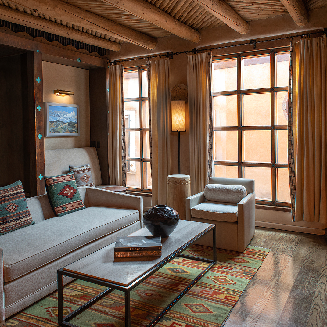 Rosewood Inn of the Anasazi is just about as central as a Santa Fe hotel can get, but that doesn’t mean it feels urban. This town’s compact, low-rise, walkable center never gets all that busy, and the Inn’s traditional pueblo-style construction lends it an extra measure of privacy. From its birth as an independent hotel, the Inn of the Anasazi — named for the ancient civilization that built the region’s distinctive cliff dwellings — was meant to offer an unusually authentic and culturally sensitive New Mexican experience. And now that Rosewood is involved, it’s also a thoroughly first-rate luxury hotel, bringing to bear the brand’s decades of global experience.