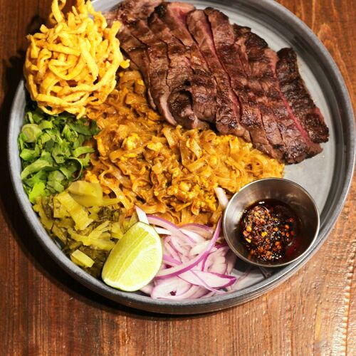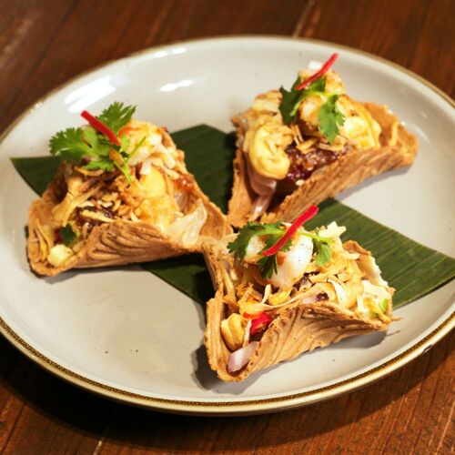 The name may reference Bangkok's original name, Phra Nakhon, but this busy spot is all about the now and just might convince you that you're dining in an alley in the capital city. It's precisely the point, as this restaurant from Intira and Norapol Youngphitak celebrates Bangkok's street eats scene. Dishes are well-executed, especially the hor mok hoy mang phu, a vibrant dish of tender mussels stuffed with curry paste custard and sweet coconut milk sauce. Namtok kor moo yang plates grilled marinated pork jowl tossed with spices and a Thai chili-lime dressing, but the well-executed curry pancake, a roti flatbread stuffed with minced chicken, vegetables, and ajad is a savory delight. It tastes even better while sipping an inventive cocktail named for characters in Thai soap operas.