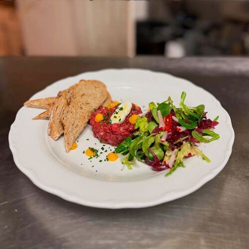 This inviting restaurant is located directly on the market square next to the small church. The two inviting dining rooms are done out in white with light wood furnishings and lovely cross-vaulted ceilings. There are also a few tables on the terrace in front of the building. The menu features flavoursome home-style regional fare such as braised rabbit leg with red cabbage and dumplings. Attentive service. The reasonably priced lunch deals are especially popular – reservations are recommended. In the evening, the cuisine is a little more upscale. Tip: Factor in enough time for a stroll through the pretty old town.
