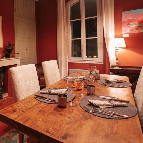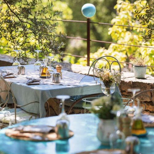 "The menu changes every day, often even between lunch and dinner. The fruit and vegetables are grown in the organic kitchen garden and the rest of the produce is sourced locally, notably in the markets of La Provence Verte. The chef has a no-waste philosophy, using the ingredients in their entirety ; any leftovers are given to the animals or transformed into compost. New building on the site seeks to minimize the environmental impact."