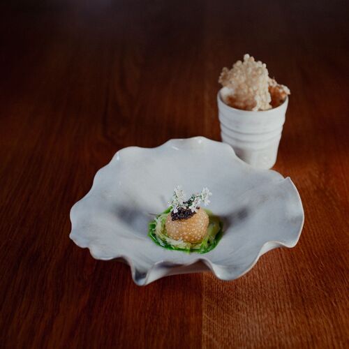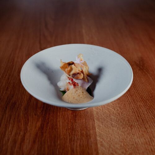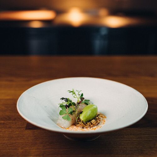 An interesting modern dining concept. It all kicks off at 7pm when the guests for the evening arrive. At 7.15pm, service begins. There is a single seven-course set menu (with additional amuse-bouche and final course) showcasing a global palate with strong Asian influences and delivering bold, distinct flavours. Plenty of umami and studied technique are the hallmarks of chef Luis Hendricks's cooking – these underpin the entire menu. Then there are the masterful desserts, such as a perfectly balanced black garlic and dark chocolate mousse, which, together with roasted pecan, banana ice cream and refreshing bergamot vinaigrette, create a refined combination of nuanced flavours. Diners are seated at an 18-seat counter facing the open kitchen, from which they can see the cooks in action. This set-up, which allows you to witness teamwork at its finest and sense the enthusiasm as they set about their work, fosters a sociable and entertaining ambience that aligns well with the trendy urban aesthetic. As well as high-calibre wines, the expertly crafted alcohol-free beverage pairings are highly recommended! Zeitwerk, another restaurant by Robin Pietsch, is right next door.