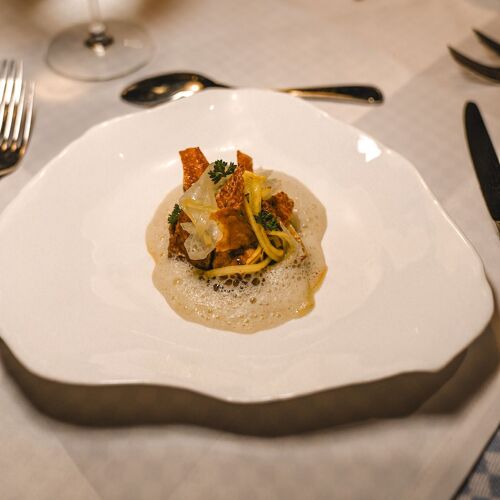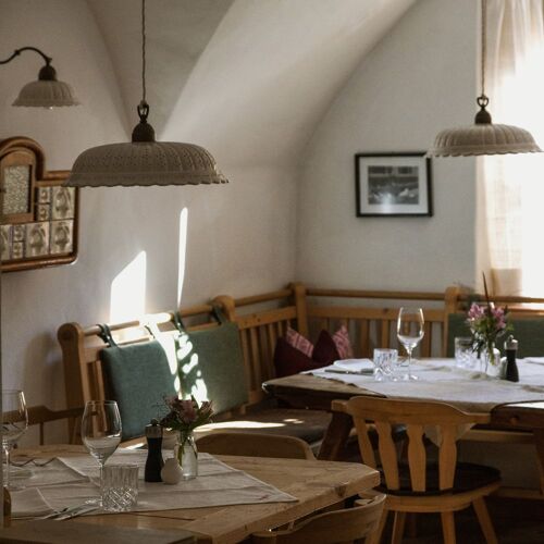 On the outskirts of Weyer, this farmstead, the presence of which was first documented in 1130, lies at the start of the Habach Valley. It has been owned by the Meilinger family since 1832, and today the hotel and restaurant are in the capable hands of siblings Elisabeth and Franz Meilinger Jr. The chef and his team cook up traditional regional cuisine with seasonal influences, served either à la carte or as a tasting menu, and accompanied by an all-Austrian wine list. A five- or seven-course surprise menu is available Fri-Mon by pre-booking (one day in advance). The cosy space with a beautiful vaulted ceiling has a rustic feel; the terrace commands a view of the Hohe Tauern mountains.