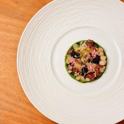 Resembling the Chinese pronunciation of a word which refers to a title of nobility, Jue is a restaurant that specializes in Cantonese cuisine. The set menu is also named after the different noble titles in China. One of Jue's signature dishes is its barbecued pork which, after being marinated, is roasted in a high-temperature oven to ensure a supremely crispy skin and juicy, flavorful meat. Of the 13 different varieties of dim sum on offer, the cheung fan (rice noodle roll), shumai topped with abalone, and the spring rolls are not to be missed.
