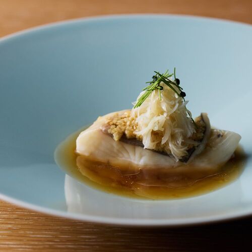 The spare interior reminds us of a tea hut, its shelves casually stocked with water jugs used in the tea ceremony. On one earthen wall, an implement used to pierce bags of rice to take samples hangs like a flower arrangement. Omakase set menus place the accent on nigiri. First up is gizzard shad, an item notoriously difficult to get right. Boiled squid, conger eel and egg follow, each accomplished in proper sushi shop fashion. Refined, no-nonsense sushi, the way it’s meant to be.