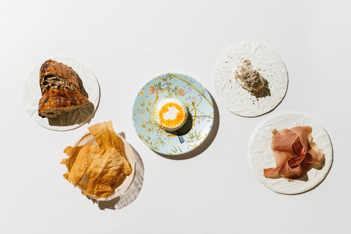 The ingredients tell stories of the place, like the cow’s milk produced by the nearby organic farm, used to make fresh cheeses following the chef’s grandmother’s recipes in honor of family tradition, or the curd for tortellini and the sour cream for butter.