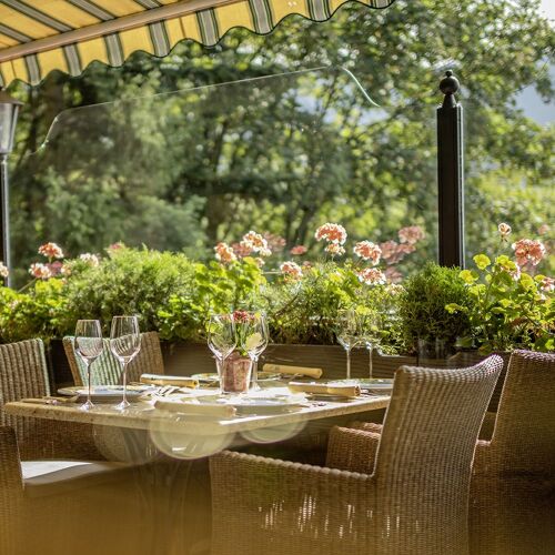 The stylish and elegant dining area boasts the fireplace after which this restaurant is named. Classic and traditional cuisine with international influences is served – small portions are also possible. The terrace with a view of the Ellbachtal is popular in summer.