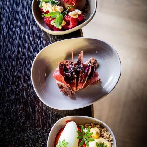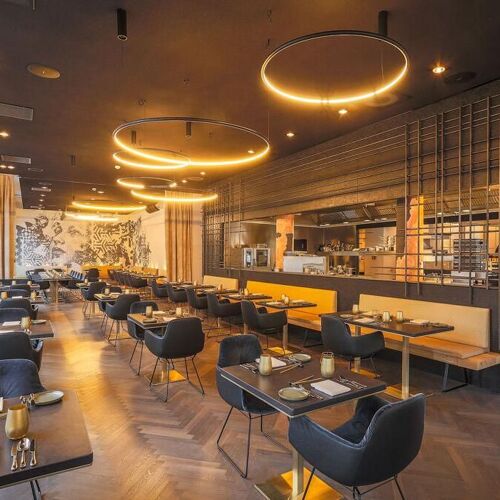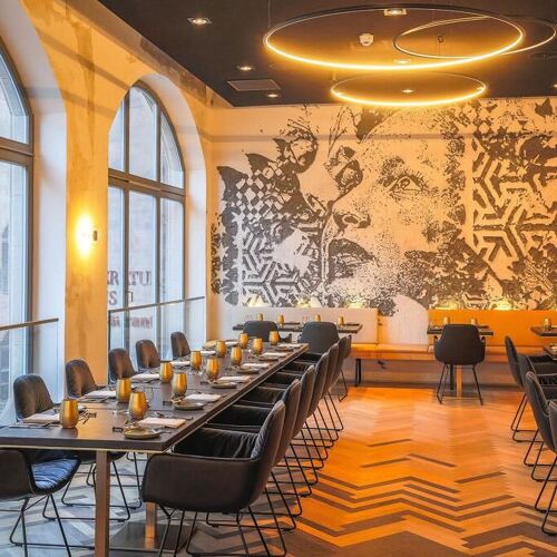 The location that houses this restaurant is interesting in the way it blends the architectural details of the old building, such as high ceilings and large arched windows, into the modern, chic-meets-urban look. In this stylish yet relaxed setting, diners are treated to warm hospitality and can watch Michael Seitz at work in the open kitchen, as he cooks up international dishes with a Franconian twist. For groups of two or more people, the sharing menus "Celebration Mood" and "Glamour Mood" are highly recommended. "Dinner Mood" is a set menu comprising four or six courses, which you compile yourself. Tip: The "OpenHausBrunch" takes place on certain Sundays, and there are other regular events.