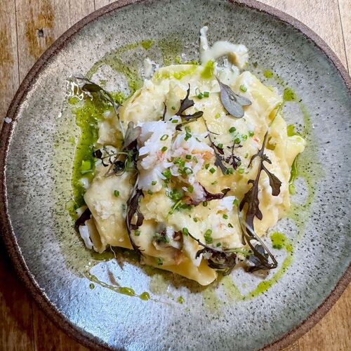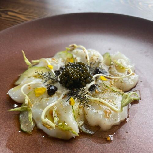 Don't overlook dessert though. A pistachio cake with caramelized apples, white chocolate, and silky pistachio ice cream will seal your meal on a sweet note.