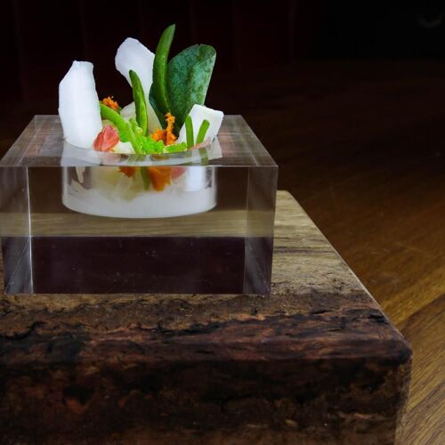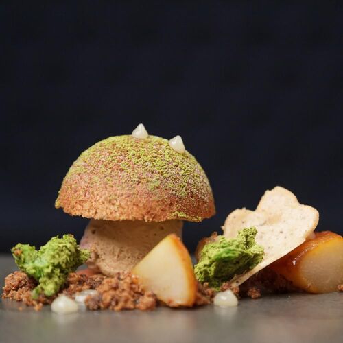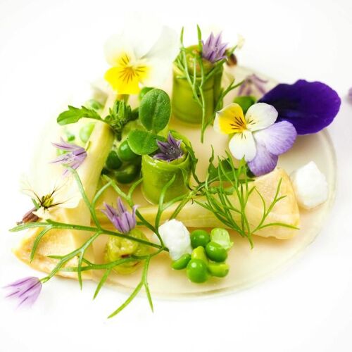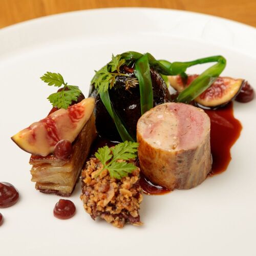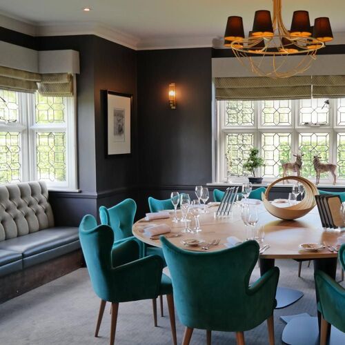 A beautiful mock-Tudor house built in Paris and reassembled in an idyllic parkland location; enjoy a drink on the terrace while watching the deer. The seasonal tasting menu offers sophisticated, artfully presented dishes with creative texture and flavour combinations and subtle Asian influences.
