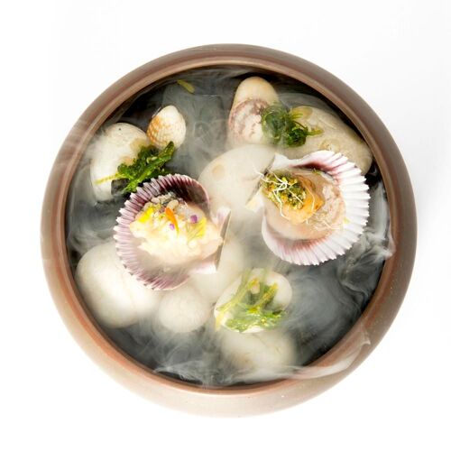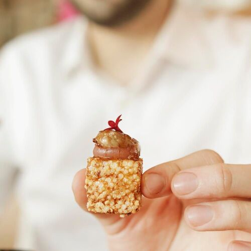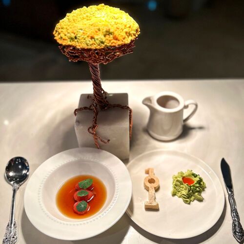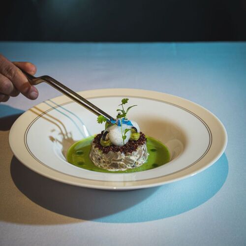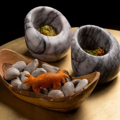 Come to experience elevated Colombian food and dramatic presentations, from the tableside "chocotherapy" to the "Tree of Life" bread service. Expect a variety of small bites leading up to the main courses, including an activated charcoal buñuelo with a porcini and black truffle filling, and a fritter made with fresh cheese, corn, and tapioca pearls. Cleanse the palate with a green mango popsicle with a spicy powder coating and a shot of aguardiente.