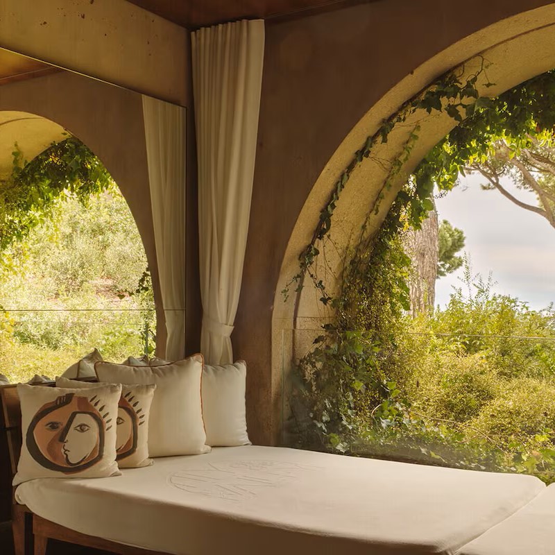 La Croix Valmer, twenty minutes from Saint-Tropez, is home to Lily of the Valley, a wellness-focused retreat whose tranquil atmosphere is a world apart from its more revelry-oriented neighbors. That’s not to say it’s not glamorous — with design by Philippe Starck, and a clientele that spares no expense in pursuit of self-care, it’s squarely in modern-luxe territory. There’s a lavish spa and a 25-meter outdoor pool; the splendid five-mile Gigaro Beach is just a few steps away, and the Vista restaurant, with its menu full of vegan and vegetarian options, looks out over the bay.
