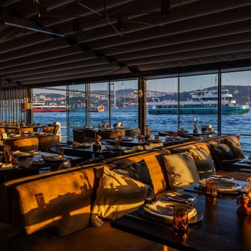 Dining in the gardens of the fully refurbished Feriye Palace is a new experience each time. Here on the edge of the Bosphorus – some diners even arrive by boat – you have the ever-evolving backdrop of the constant coming and going of the ships. And there is something magical about the view of the illuminated Ortaköy Mosque and Bosphorus Bridge, especially when you have a delicious cocktail in hand. This restaurant strikes a fine balance between chic and relaxed, and the service is attentive. The chefs, who can be seen at work in the open kitchen, let the ingredients speak for themselves. Their dishes are not overly elaborate, but rather classic fare with subtle zesty and spicy nuances. They give aubergine purée a delightful tang by mixing in yoghurt, making it an excellent accompaniment to barbecued lamb.