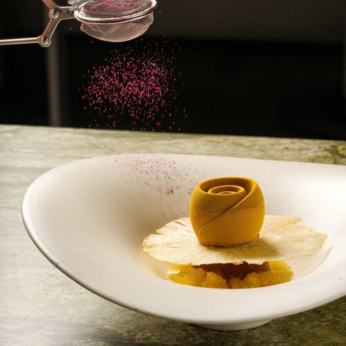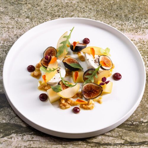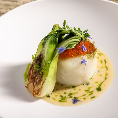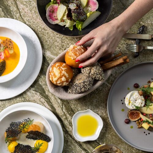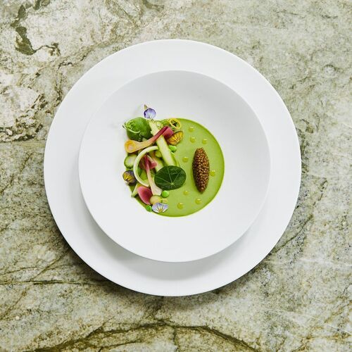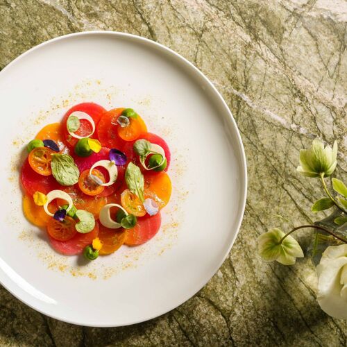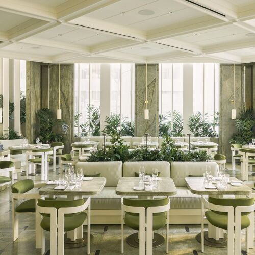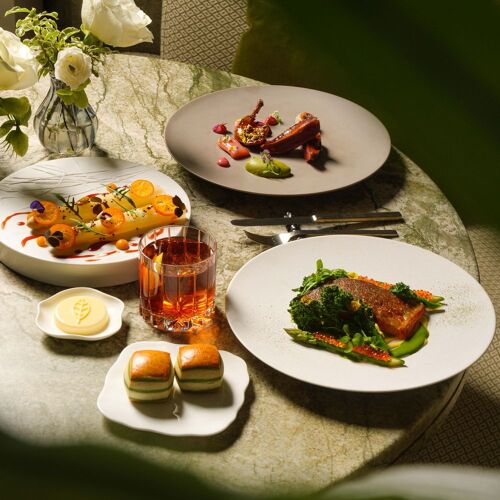 Chef Alain Verzeroli's light-filled space is a verdant vision—with olive-green velvet furnishings, green-veined marble flooring, and lush plants at every turn. It’s the perfect effect for the chef's produce-driven menu, where seasonal vegetables, fruits, and herbs play a prominent role—with carefully sourced meats and sustainable fish as the supporting cast. Dishes have included the likes of grilled Spanish octopus, plated with green olives, romesco, and green beans, or Ora King salmon enhanced with smoked chili butter and pak choi. End with a Valrhona chocolate crémeux with a salted caramel sabayon or the delightful lemon tart with tarragon ice cream.