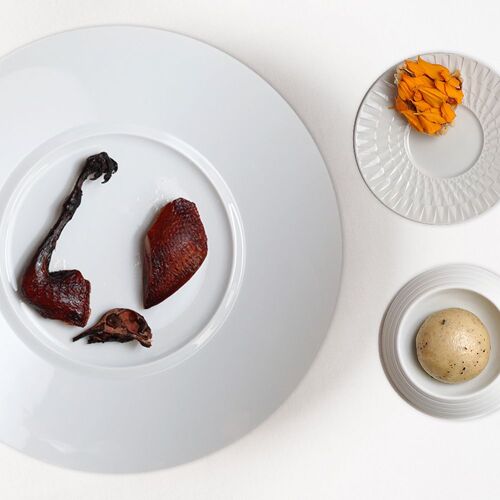 Eating underground in the subway system may not sound appealing, but that hasn't stopped Chef Dae Kim. In the heart of Koreatown at Herald Square behind a code-locked door, find a black marble counter that stretches the length of the room. Every chef is armed with tweezers to manage and primp gorgeous dishes that are largely contemporary in their design. Seafood is a serious focus with the likes of crab, fluke, clams, and mackerel. The restaurant’s signature is obvious once you spot the squab dry aging in a fridge. Against the backdrop of 80s hits playing overhead, a chef holds the bird up and repeatedly ladles hot oil over it in the style of Peking duck. It’s a defining reminder that in New York City, anything can happen anywhere.