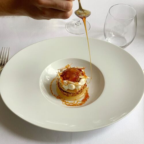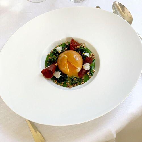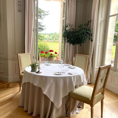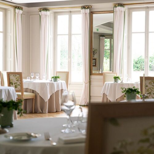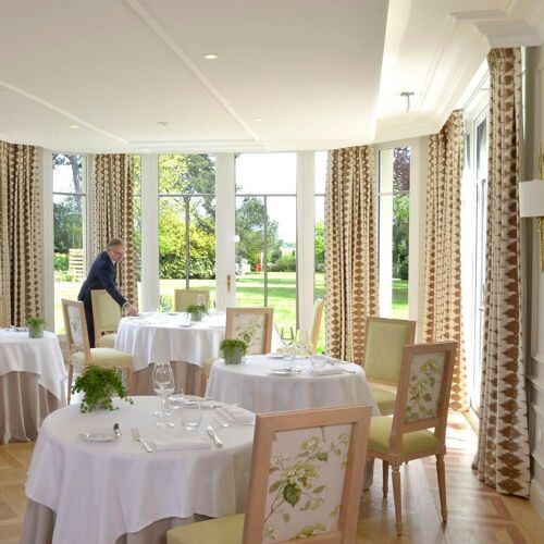 Wood panelling, parquet floors and 18C furnishings set the swish, elegant scene. The dedicated chef draws inspiration from the château's vegetable garden and from produce grown by small-scale suppliers. His delicate cuisine features a variety of appetising takes on Normandy produce and pleasing alliances of flavours, for example: slow roasted free-range chicken, confit of shredded leg with pleurote mushrooms and elderflower jelly; pearlescent brill, confit of fennel, carrot seasoning and lobster bisque. First-class, seamless service.