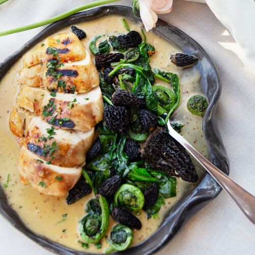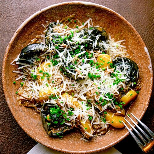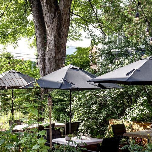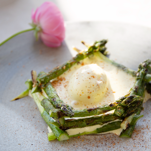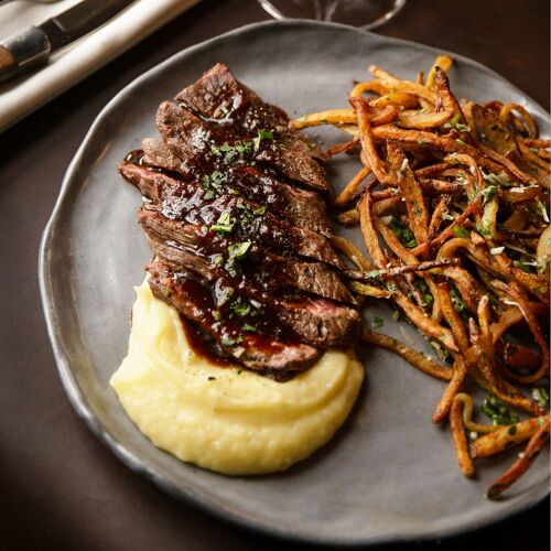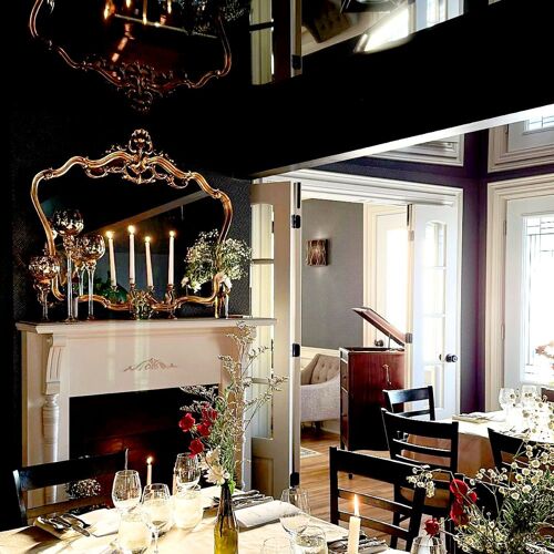 In the center of Granby, 90 minutes from Montreal, a Four Square-style cube-shaped house catches the eye with its coffee-colored wooden cladding and white detailing. A terrace, kitchen garden, and herb garden on the roof set the tone, heralding the taste sensations to come! Inside, warmth meets simplicity: a refined bar, a glassed-in wine cellar, black tables, and an open kitchen with a chef's counter. Two crackling maple wood fires call to mind a steakhouse. The cooking, mostly over an open flame, brings the best out of the vegetables, fish, and meat, which are carefully selected by the chef.
