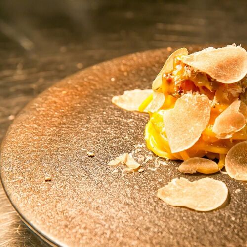 Seasonal foodstuffs are the theme at this modern Italian restaurant. Tetsuya Honda’s culinary creations link the traditional cuisine of Italy with the seasons of Japan. The speciality, ‘Sea Urchin Tagliolini’, uses no cream, relying instead on lashings of sea urchin to achieve a rich, satisfying flavour. Honda strives to elicit the flavour of each ingredient.