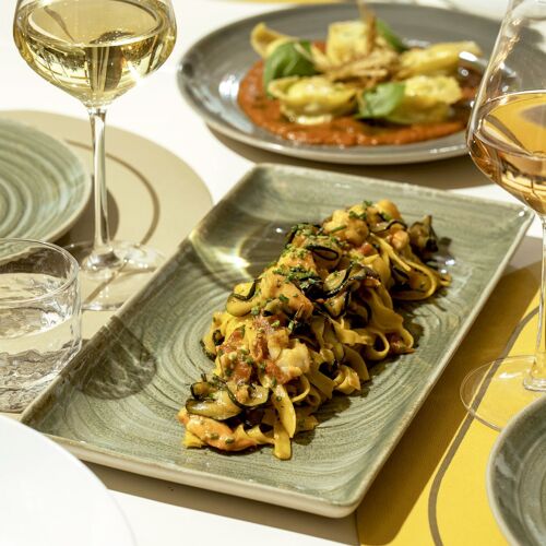 A partnership between celebrated French chef Pierre Gagnaire and Nicole Rubi of La Petite Maison in Cannes resulted in this bright and colourful restaurant. It’s the perfect backdrop to their favoured cuisine – that of the Mediterranean, so expect everything from snails and roast poussin to fritto misto, pizza and assorted pasta dishes. The terrace overlooking the water is nicely decked out and a very pleasant spot.