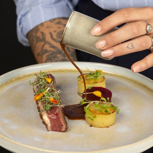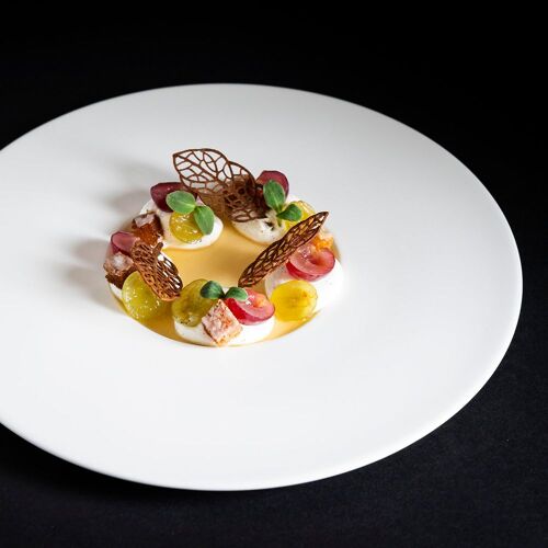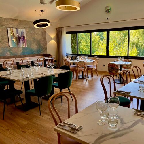 Perched on the heights of Chasse-sur-Rhône, the Domaine de Gorneton brings you under its spell with its bucolic atmosphere. This 17C stone building houses guestrooms, a swimming pool and this restaurant, the name of which is a nod to the waterlilies on the pond. The simple and inviting dining space combines rustic tiling with exposed beams. Chef Loïc Plestin (previously at La Loge Bertin in Manosque) cooks up serious, flavourful cuisine (not least the jus): chicken fricassee with wilted spinach, fragrant tomato jus and mushrooms; compressed apple terrine, white chocolate ganache and Breton biscuit.