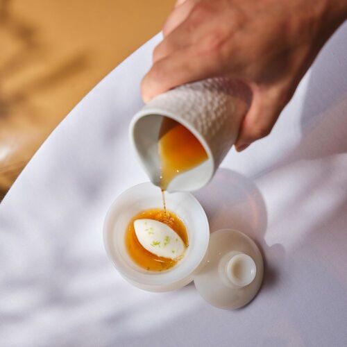 Calling itself a brasserie is just being humble. The elegant space features exquisite artwork and an attractive display kitchen. The à la carte menu changes regularly to include sharing plates that are great for families; the "Deluxe Degustation" tasting menu embodies the chef's culinary vision. Tea-smoked pigeon is one of his proud creations: he marinates then smokes young birds from Shiqi, uniting Chinese flavours with French techniques.