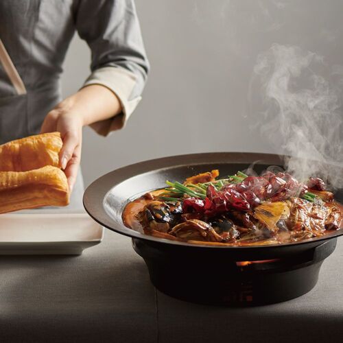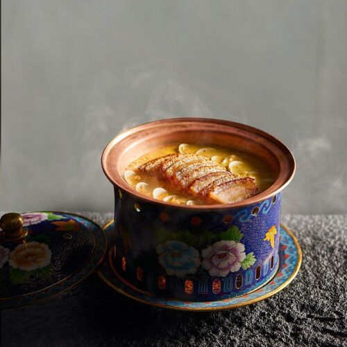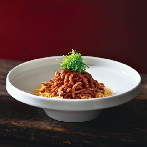 The bamboo bush, jade ornaments, ink paintings and cut flowers may prime your brain for a hefty price tag, but a meal in this modern restaurant doesn’t break the bank. Its signature braised fish head is juicy and tender, nicely braised in an aromatic brown sauce. Roast duck uses 40-day-old birds that are chargrilled to perfection and plated gorgeously. Always save room for the creamed yam and osmanthus sweet soup.