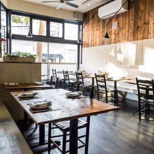 This petite Hayes Valley delight is packed nightly and yet nobody seems to care about its stream of crowds. Simply decked with a light-and-dark color scheme along with distressed wood, the room features a laid-back style and rustic-chic farmhouse vibe. It books out far in advance, so arrive early to score a seat at the bar, where trendy types can be found devouring the Californian fare, infused with global ingredients and fine-dining precision.