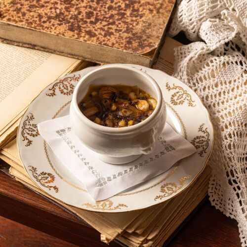 "Our raw materials are seasonal and local, with 80% coming from small local producers. Extra virgin olive oil, honey, and aromatic herbs come from the family organic farm."
