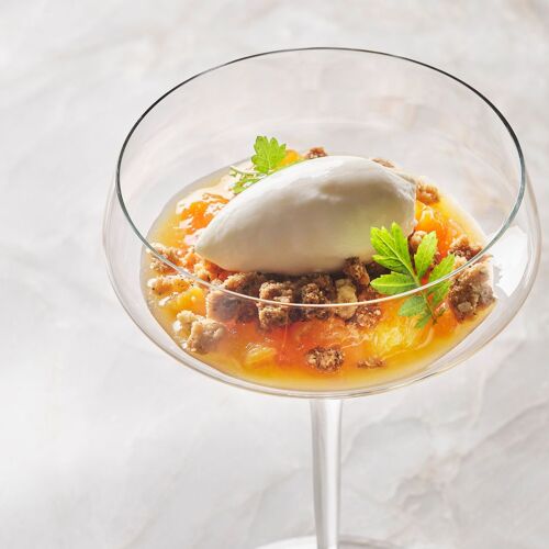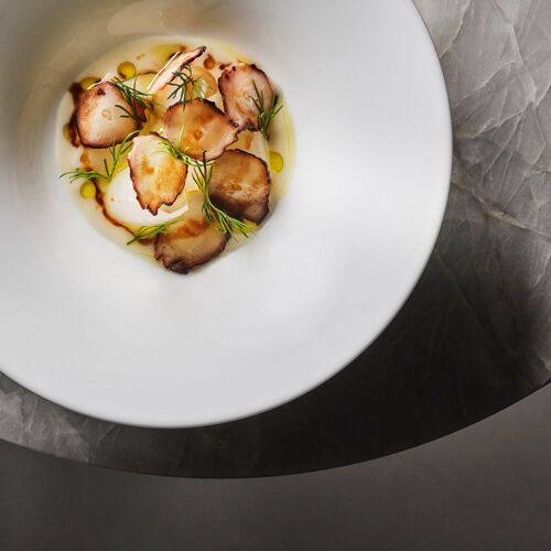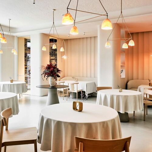 Chef Óscar Velasco, ably supported by second in command and dessert maestro Montse Abellà, is back! Here, the couple, who view this challenge as a ”lifelong project”, focus on cooking that is close to Óscar’s heart and always showcases contemporary market-inspired cuisine that champions seasonal ingredients yet with a little more freedom than in his previous projects, while at the same time demonstrating equal levels of technique and elegance. The à la carte, featuring dishes such as white prawns “al ajillo” with fried egg and potatoes (which finds its way on to the menu at the insistence of his son), is complemented by an impressive tasting menu, although there’s also the option of ordering half-plates. In addition to the bright dining room, a separate space called El Apartamento (with its own kitchen) is also available for private dining. On the menu, it was a pleasant surprise to find iconic dishes from his successful stint at the helm of the erstwhile Santceloni, such as the legendary smoked ricotta ravioli with Paris 1925 Oscietra caviar.