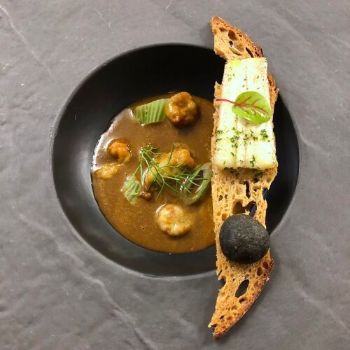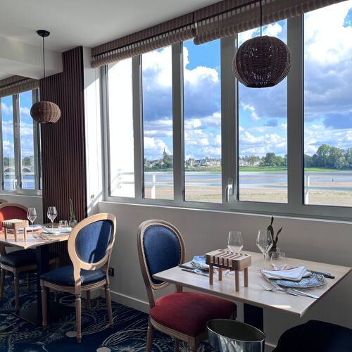 In this restaurant on the banks of the River Loire, diners enjoy chef Sylvain Justice’s creative, high-spirited cuisine with lashings of generosity to boot: soup of bouchot mussels in kari-gosse spices, green peas, confit of lemon and crunchy croutons; carpaccio of squid, peppers and lemon; roast monkfish, lobster bisque risotto with parmesan and basil; roast John Dory, spring veggies and hollandaise sauce; nectarines in verbena and almonds or Mirabelle plums and mead in shortbread. Pop next-door to the Bistrot for a more casual dining experience.