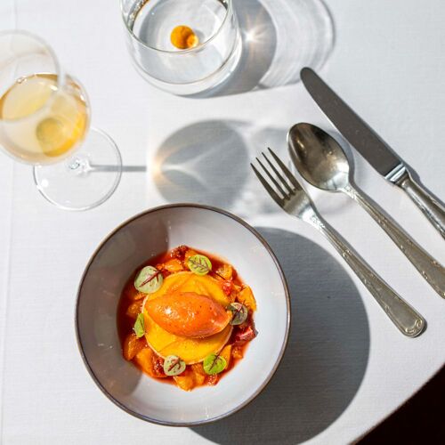 Nestling amid the greenery, this gorgeous 16C bastide looks out over the Massif des Maures and the picturesque village of Arc-sur-Argens. The son of restaurateurs from the South-West, Sébastien Sanjou has set up shop in the Var, where his early endeavours were supported by Jacques Maximin and Alain Ducasse. This native of Tarbes is savvily making the Mediterranean terroir his own, cultivating, for example, an exceptional partnership with market gardener Philippe Auda. Wonderfully ripe and juicy tomatoes, served with a basil sorbet and burrata and seasoned with olive oil and Baume de Bouteville vinegar, make for a fantastically sunny starter. This is typical of his cuisine: colourful and imaginative, with, at the heart of each dish, a wonderful ingredient that has been carefully prepared with respect for its original flavour.