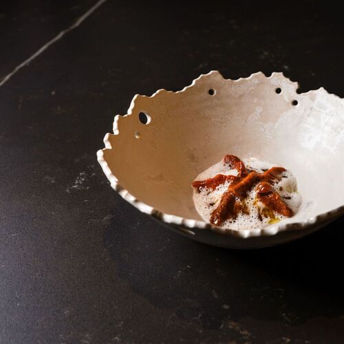 The name of this restaurant is particularly apt (Kaleja is the Sephardic word for “alley”) given its location in Málaga’s Jewish quarter, just a few steps from the city’s Picasso Museum. The first thing that will strike you as you walk through the door is the subtle aroma of smoke, a key feature that sets this restaurant apart. Here, chef Dani Carnero has gone for a modern take on dishes of old, working with the heat of his wood-fired grill to create what he calls “candle cooking” – a style of cuisine that revives tastes and flavours from his childhood, in many cases connected to traditional Andalucian recipes that have been brought back to life and are served on two menus: Degustación and A la carta (the latter only at lunchtime, Tuesday to Friday). One dish that particularly stood out was Kaleja’s take on gazpacho (in Málaga, where it is often made with onion, it is called “gazpacho de floja”), with trout roe and almonds.