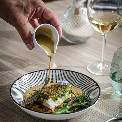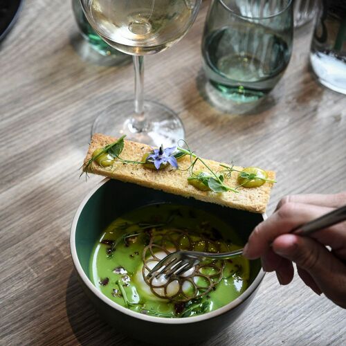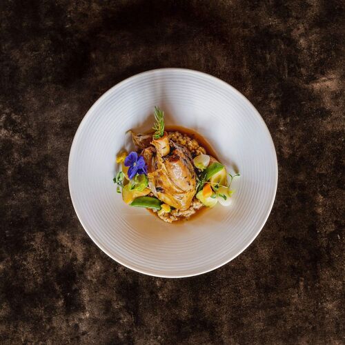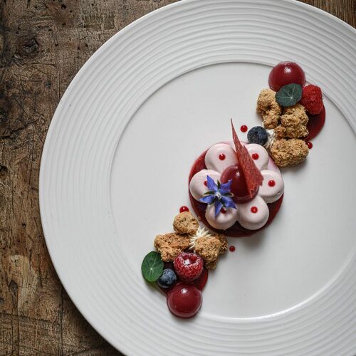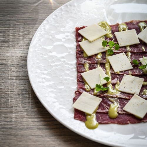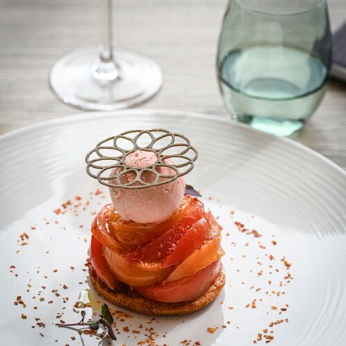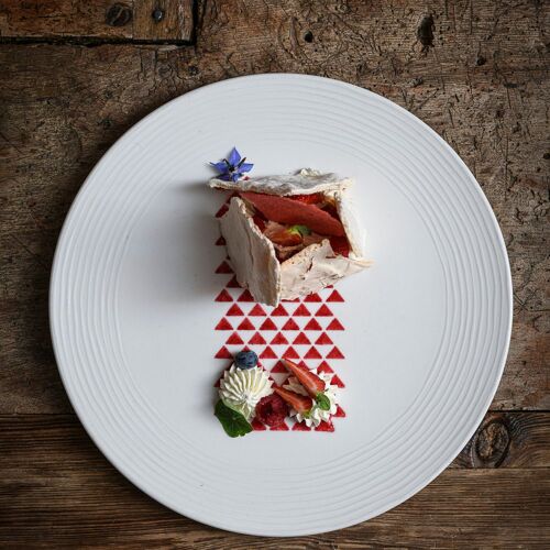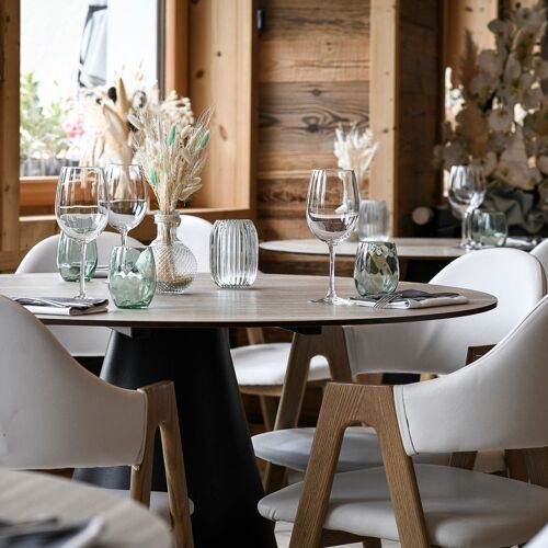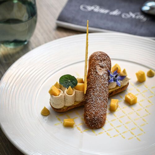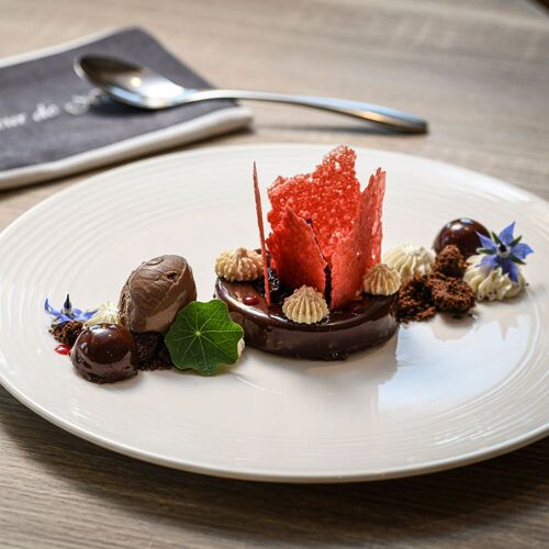 Duck pâté en croûte with foie gras, calf's head with ravigote, pavlova with bilberries: this tasty and hearty traditional cuisine is served in a family atmosphere and – in summer – on the lovely panoramic terrace, with a view of the Chablais mountains.