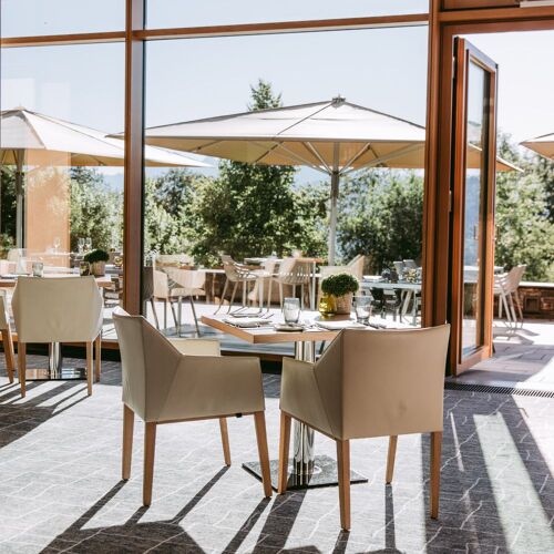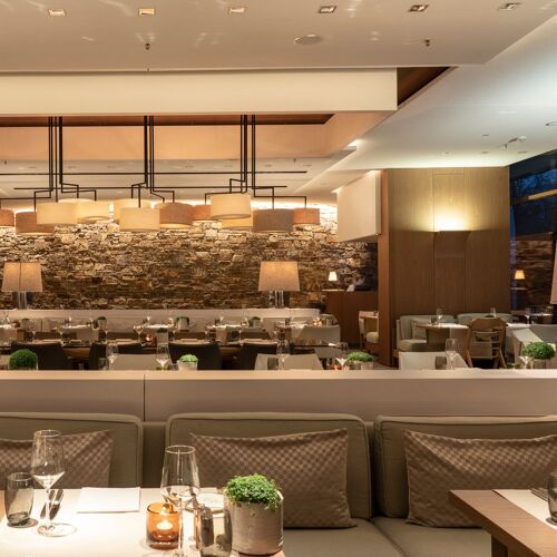 Overlooking Berchtesgaden, surrounded by stunning natural beauty and with a magnificent mountain backdrop, the location is to die for! At the restaurant of the luxurious Kempinski Hotel Berchtesgaden, you can enjoy delicious seasonal cuisine made with fresh, local ingredients. For dessert, we highly recommend the Eckerbichl-Haustorte. The sleek, modern interior design is a draw in itself. Incidentally, the restaurant is named after the first person to climb the east face of the Watzmann and Germany's first official mountain guide. Weather permitting, be sure to make the most of the spacious terrace. Tip: A short path around the hotel affords panoramic views of the mountains – especially magical at sunset.