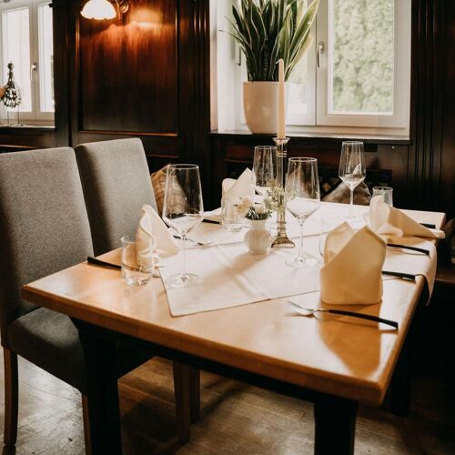 This well-established restaurant with its spruce little hotel has been run by the same family for three generations. Each dining area has quite a different style, from rustic to pleasingly contemporary, plus there is a delightful terrace. The menu features a diverse range of options, from comforting regional fare such as half a rotisserie chicken, or "Grandma Hilde's Rohrnudel" (oven-baked yeast dumplings) for dessert, as well as modern, seasonal and internationally influenced dishes. Vegetarians are well catered for, too. Fantastic value for money!