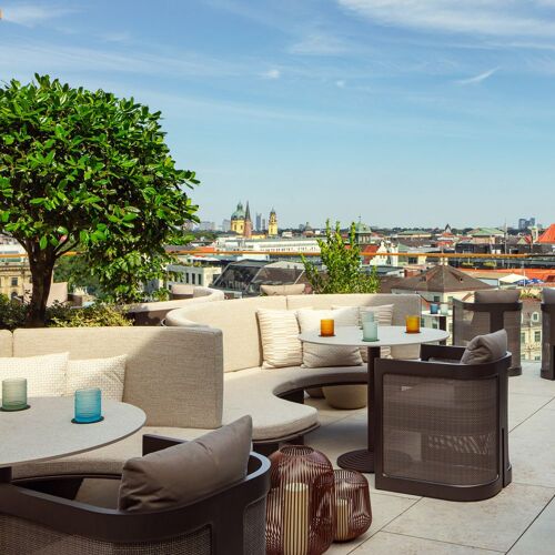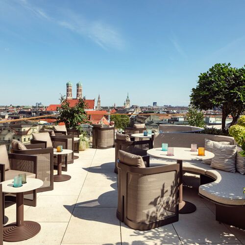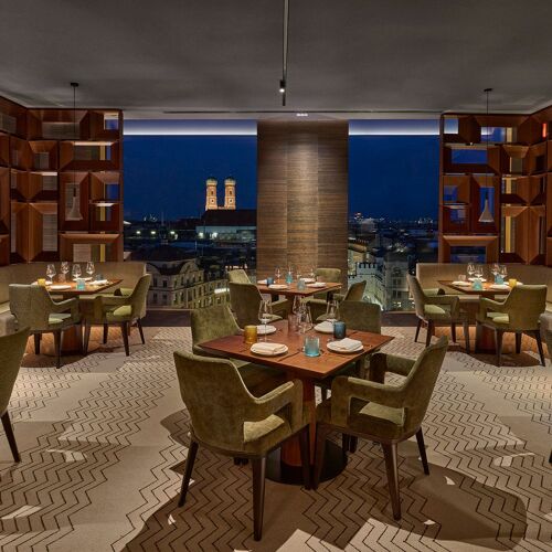 For starters, the location right on the square known by locals as "Stachus" is nothing short of exclusive. GRETA OTO is housed within the luxurious and contemporary new Königshof hotel, on the ninth floor to be precise, affording fantastic views of the city of Munich and the Frauenkirche. The restaurant is no less chic and sophisticated than the hotel itself. Calm warm hues and dimmed lighting create an intimate atmosphere. The cuisine is Latin American with modern international influences, from Peruvian ceviche to Brazilian fillet steak and grilled octopus. The wine list to accompany the food is international. Tip: They have a private table – "La Mesa" – that you can book for special occasions. There is also a bar and a lounge terrace.