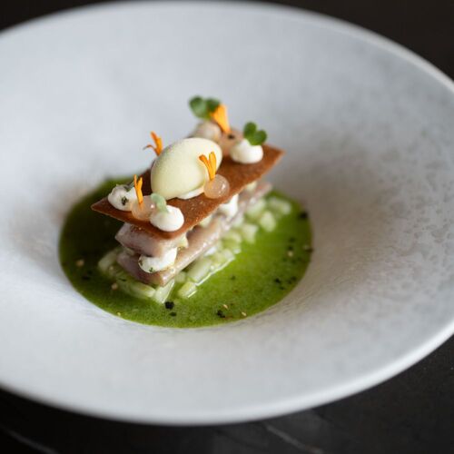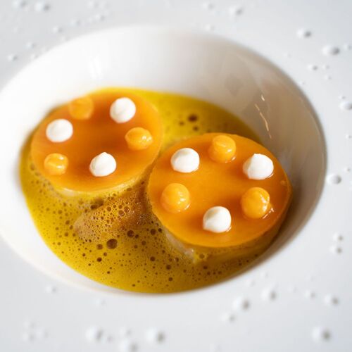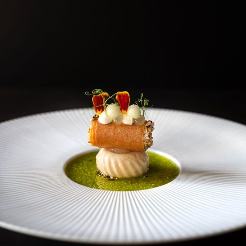 Welcome to Dilsen, a picture postcard perfect village of Limburg, whose peaceful ambience also reigns in the Vivendum Hostelry. Established in an elegant 18C presbytery, the venue has been modernised while carefully preserving its historic cachet. The terrace overlooking the Oude Maas, is one of the finest of the region! Alex Clevers masterfully blends his classical training with a creative bent. A fan of Thai cuisine, he delicately mixes exotic flavours with local produce and traditions. His passion for exoticism, which is far from skin-deep, underpins his entire approach to food. For example, he might serve nobashi shrimps, cooked or tartare, adding a subtle fresh note with a papaya salad and a coconut and lime sauce, whose rich velvety intensity may well bring to mind tom kha kai recipes. He is, however, equally at home with game, pairing hare and endive in a match made in heaven. In the words of Alex Clevers, cooking is the art of omission, which he consummately demonstrates on a daily basis. Even better, you can book one of the lovely guestrooms to enjoy the craftsmanship of this talented chef in style.