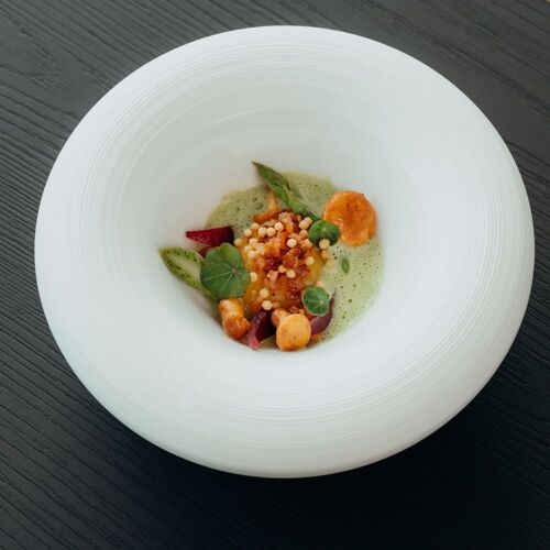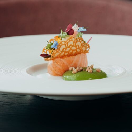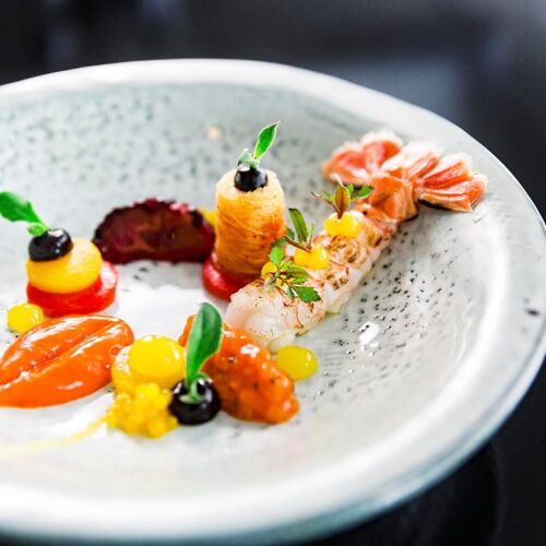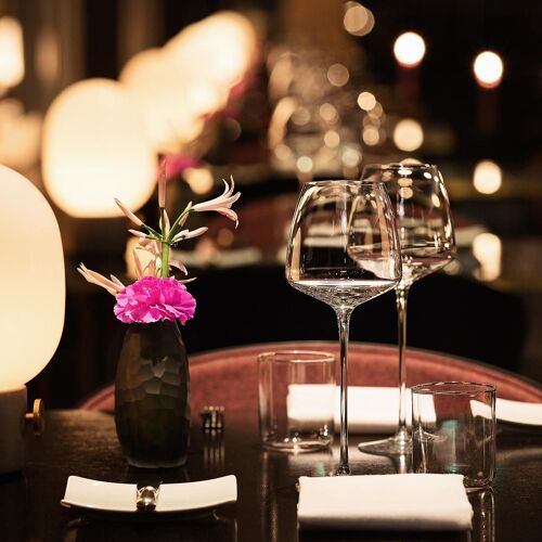 The magnificent view and the chic interior make Hugos, laid out on the 14th floor of the InterContinental hotel, a highly appealing location in the capital. Soft lighting, elegant furnishings and candlelight make for a relaxed and romantic atmosphere. Chef Eberhard Lange's culinary creations more than live up to the attractive setting: in his eight-course set menu (which can be reduced to six courses), he showcases his precise technical skill with classic dishes which he sets off with a modern twist. You are sure to find the perfect accompaniment on the wine list, which comprises around 500 labels. Tip: treat yourself to an aperitif at the bar before dinner.