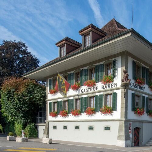 The 14th generation of the same family is at the helm of this gorgeous traditional Bernese inn – it was first documented in 1261. Whether you eat in the pretty, inviting dining area or the lovely garden, you will be treated to friendly service and delicious food with a traditional regional character. One speciality of the house is the Solothurner Wy-Süppli (wine soup). The chef will be happy to explain the origins of their rather special "Bärechöpfli" dessert. Slightly reduced menu at lunchtime. There are also stylish salons.
