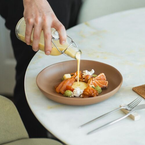 Housed in an old building that almost goes unnoticed among its neighbours. This restaurant enjoys privileged views from its terrace, where you can contemplate the Church of São Gualter – an iconic symbol of the city. At the stove is Chef Miguel Marques, who boasts wide experience in renowned restaurants in Zurich, Munich and Portugal, and presents a menu inspired by human "Evolution", reflected in dishes that hark back to the past and others that draw on culinary progress. His proposal revolves around a single seven-course tasting menu and an à la carte that changes each season, alongside an interesting selection of Portuguese wines!
