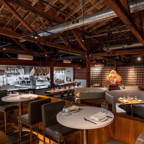 Set within a 1920s warehouse, redwood beams and tan leather furnishings lend this popular eatery a certain rustic charm. Helmed by Chef Anthony Wells, the approachable menu offers a thoroughly contemporary take on SoCal cuisine, rooted in top-notch ingredients seasoned judiciously with Latin and Asian flavors. In season, you can enjoy pastas like a yolk-filled raviolo paired with sweet peppers and corn, sauced with a lively gochujang butter, or perhaps linguine loaded with Santa Barbara uni, chorizo and cotija cheese; mains like a roasted half chicken with grilled peach panzanella are similarly satisfying. Desserts, too, are excellent: a signature reimagined upmarket Yodel might feature flavors like pistachio, white chocolate and raspberry.