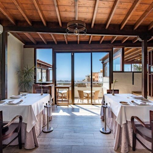 If you were to describe this restaurant located away from the tourist trail as a hidden jewel, you wouldn’t be far wrong. In its roadside location, the somewhat unassuming façade conceals an attractively renovated, rustic-style interior with a pleasant bar, plus a dining space on several floors featuring cosy nooks and crannies and pretty terraces. Here, the chef focuses on traditional cuisine full of flavour with its roots in the very essence of cooking from the Canary Islands, plus numerous dishes cooked on the wood-fired grill, such as the roasted baby goat. There’s also a good selection of matured meats and Canary Island wines!