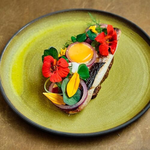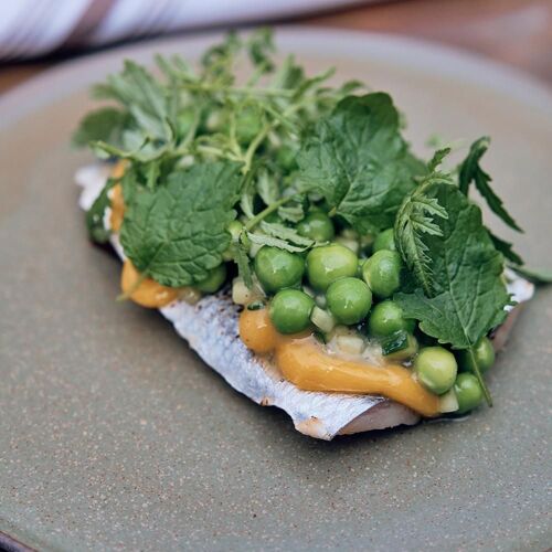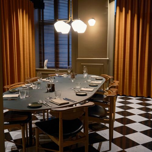 Enter past the pavement terrace with sheepskin-covered chairs and you’ll find yourself in this beautiful brasserie with a striking black & whited tiled floor, unique brass light fittings and oak & walnut chairs modelled on Finn Juhl’s ‘Reading Chair’. During the day, this is the place to come for smørrebrød – both traditional and modern – from warm fried herring with caramelised onion, ramson and apple to red pickled herring with dark berries and crème fraiche. At night, the menu focuses on contemporary Danish cuisine and an impressive wine list, with the hand-crafted dessert trolley a real feature.