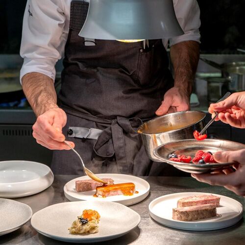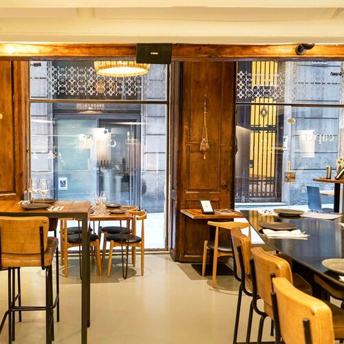 Located in one of the charming narrow streets that endow the city’s Gothic Quarter with its characteristic personality, Capet features a rustic-contemporary look and an original layout with an open-view kitchen on the ground floor (around which guests can sit and eat) and a pleasant dining room upstairs, which overlooks what is happening below. Chef Armando Álvarez champions an updated and sincere take on traditional cooking, showcased via à la carte options and two tasting menus (5 and 8 courses).