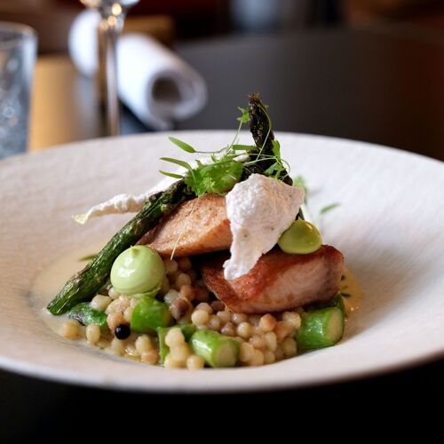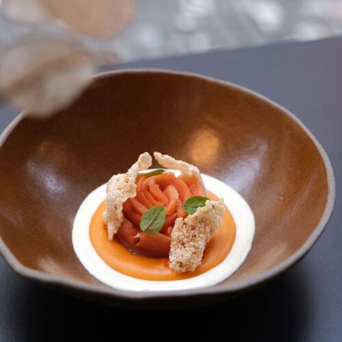 This small restaurant on one of Ljubljana’s typical pedestrianised streets boasts a modern, minimalist-style dining room, as well as an attractive outdoor terrace from which to enjoy the views of this picturesque district in the heart of the city. To appreciate the cuisine to the full, we recommend choosing one of the tasting menus. The desserts include a lighter version of the traditional Kaiserschmarrn, featuring small portions of pancake, apricots and a truly mouthwatering vanilla cream.