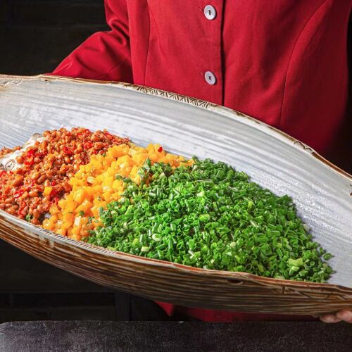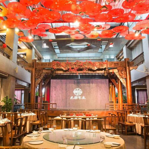 The entrance, which is framed by two memorial arches with a pond in its centre, leads into a traditionally appointed dining room. It stages a show of Sichuan ‘face changing’ opera every evening at 7pm for a cultural-culinary experience. The menu is mostly Sichuanese, with an emphasis on Chongqing snacks and nibbles. Try stewed yellowhead catfish in peppery stock with scallion which is silky and flavoursome. Portions are big enough for sharing, so bring your mates!