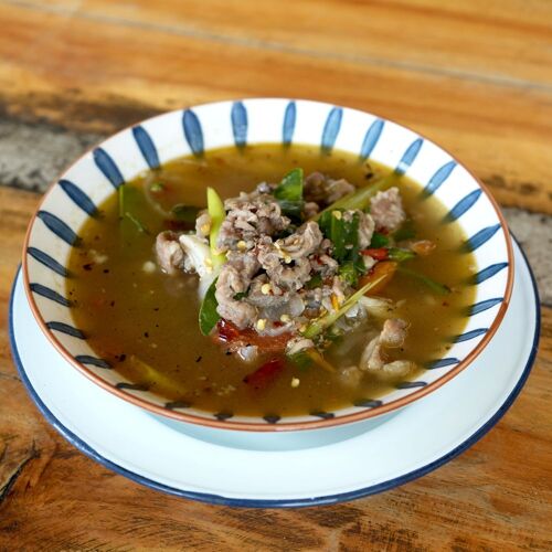 With its simple, rustic look, this quaint eatery specialises in northern larb dishes, paired with a local chaeo dipping sauce with the aroma of toasted sticky rice. The spicy, sour and fragrant beef soup is a must.