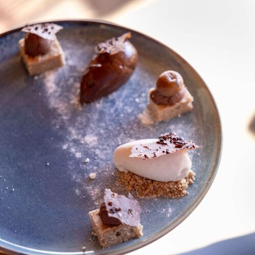 From your comfortable vantage point beneath a tiled roof by the pool, savour the view of the sweet-scented scrubland and the sea. The repertory, which displays a distinctly modern Mediterranean slant, stars Corsican produce: premium cured meats; local veal in olives with creamy polenta; lemon-flavoured Corsican cheesecake (fiadone). The concise menu is comprised of seasonal ingredients. A single set menu on Tuesdays features island specialties.