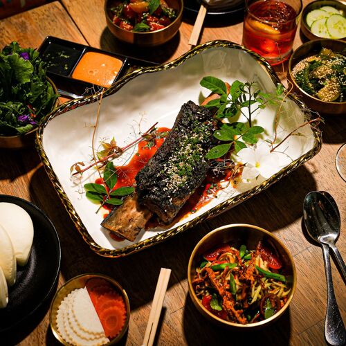There is nothing subtle about Chef Cesar Zapata and Ani Meinhold’s raucous Vietnamese mash-up in the MiMo district. A concrete compound wrapped in glowing red lanterns, the restaurant is practically a club with its sultry lighting, cavernous interior and full-time DJ. Yet, none of it gets in the way of the food, which is boldly seasoned and generously portioned. Stacks of crispy imperial rolls wrapped with mint and tangles of garlic-butter egg noodles aggressively charred on a wok are solid starting points. Everything is meant to be shared, especially the pho, which arrives in a cauldron packed with herbs, rice noodles and a meltingly tender slab of hickory-smoked short rib.
