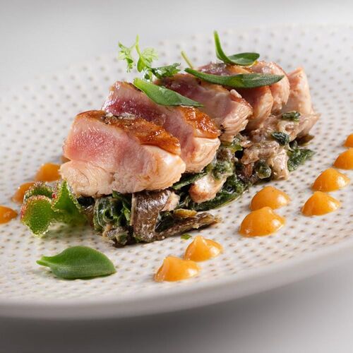 Well-prepared dishes, high-quality products and delicate presentation lie at the very heart of this restaurant. Not far from the fish market, this establishment surprises in both substance and form, offering contemporary local cuisine in a designer setting. The menu, with the option of half portions for all dishes, is complemented by two set menus: 'Gastronómico' and 'Degustación' (both with wine pairing options). What to order? We were particularly impressed by the successful combination of flavours in the grilled lamb loin and braised neck, 'Queso do Cebreiro', avocado and pea guacamole.